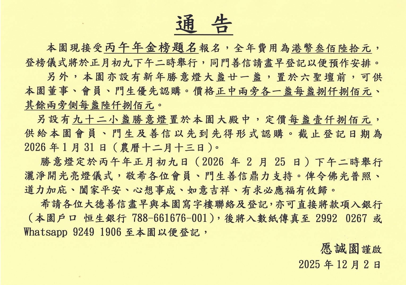 [02/12/2025] 更新 主頁 通告 「金榜題名及勝意燈報名」